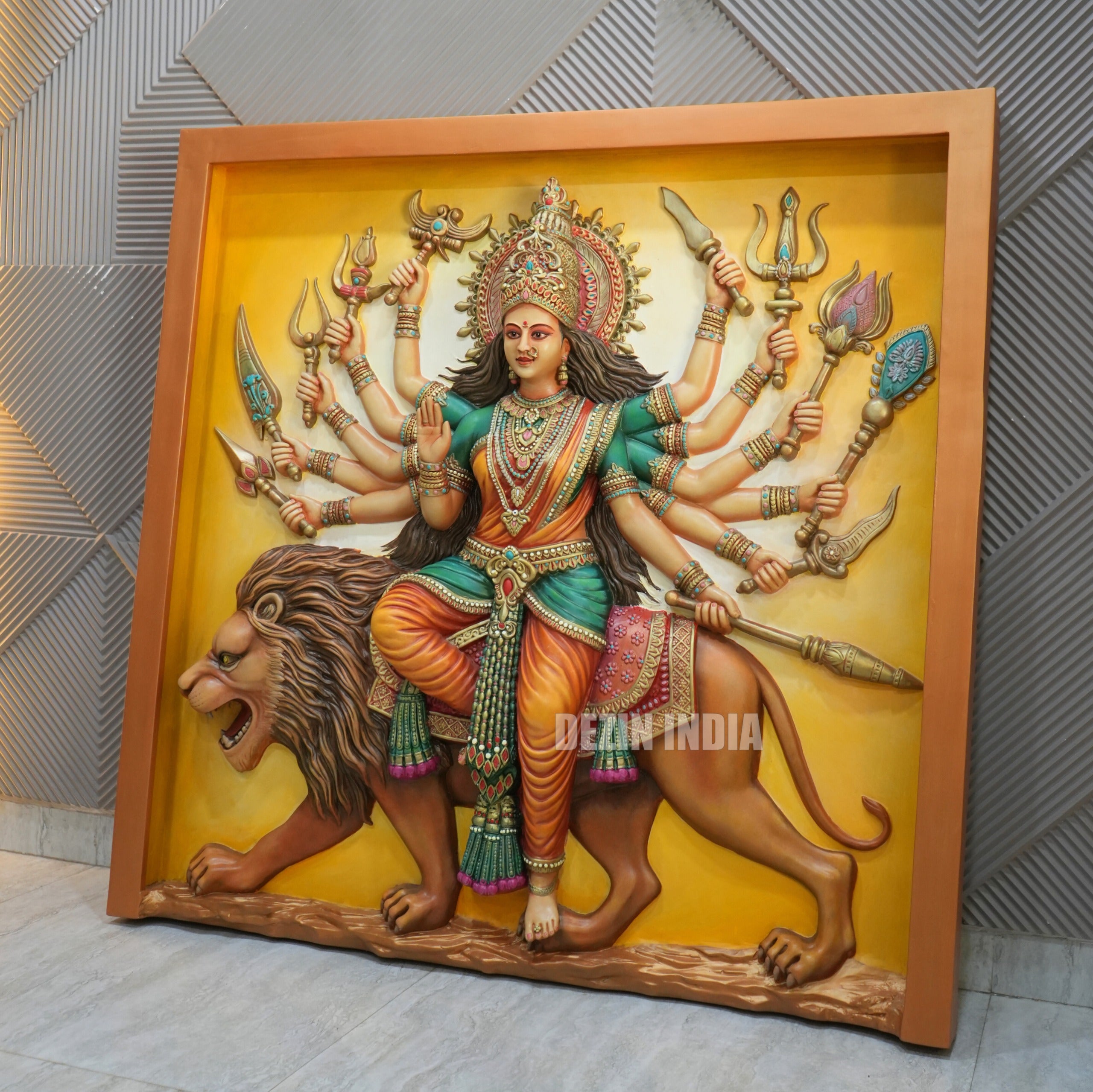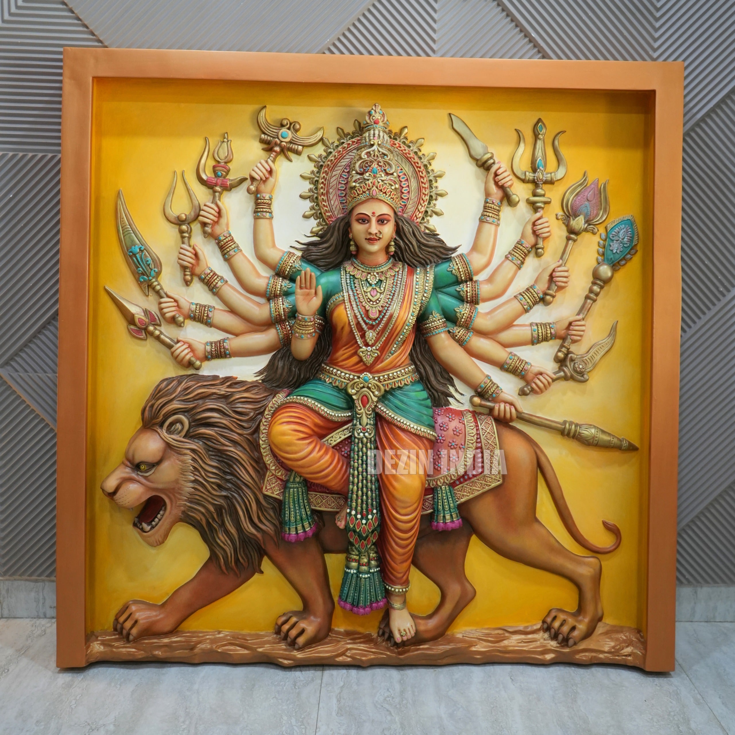 Adishakti Mata Durga Wall Mural – 4x4ft | Divine Power on Lion | Dezin India