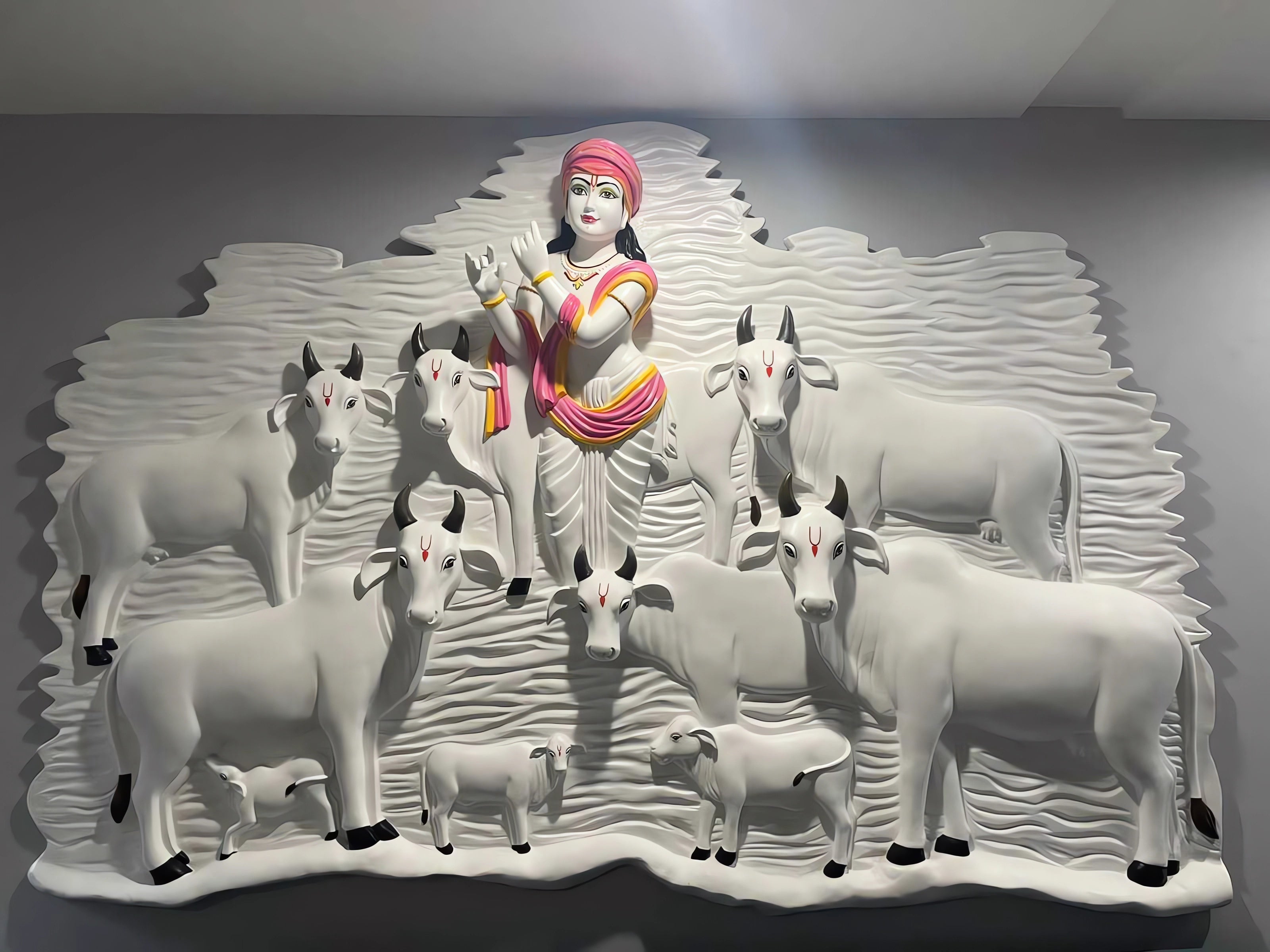 DA-47 Lord Krishna with Cows Wall Hanging Sculpture - 8x5ft