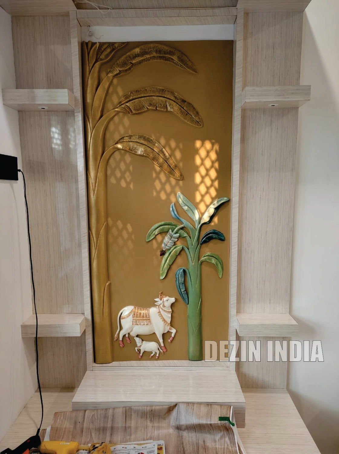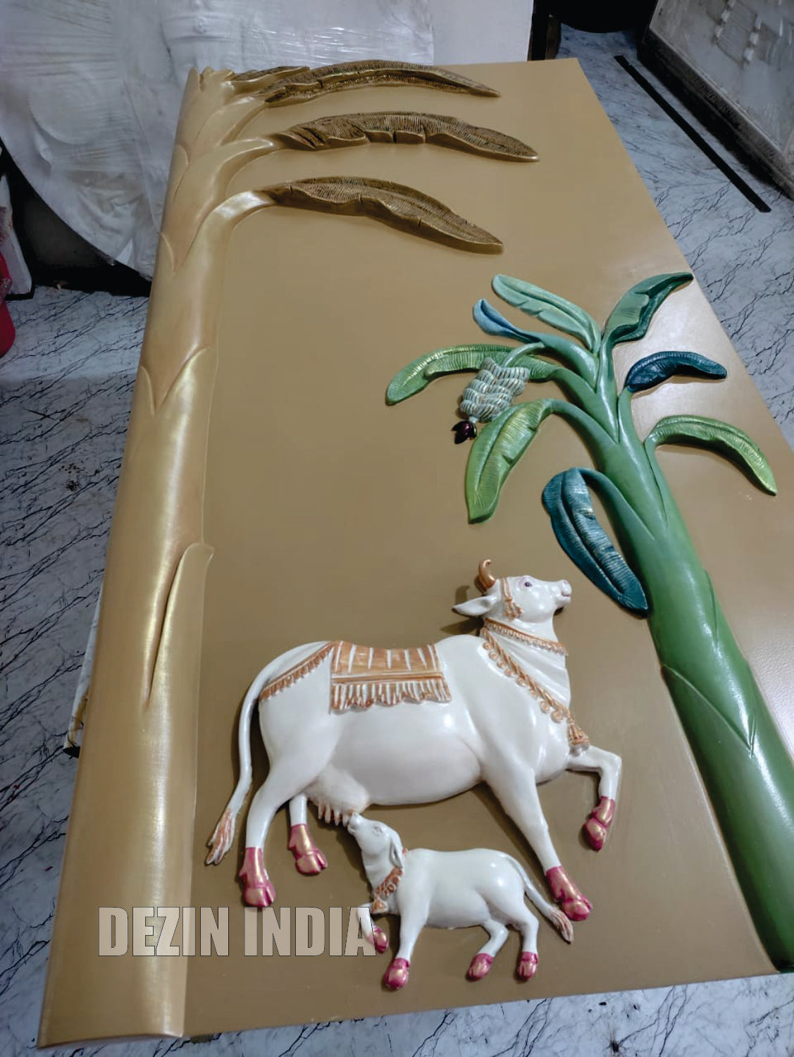 DA-67 Cow Calf with Banana Tree Wall Hanging Sculpture -4.5x2 ft