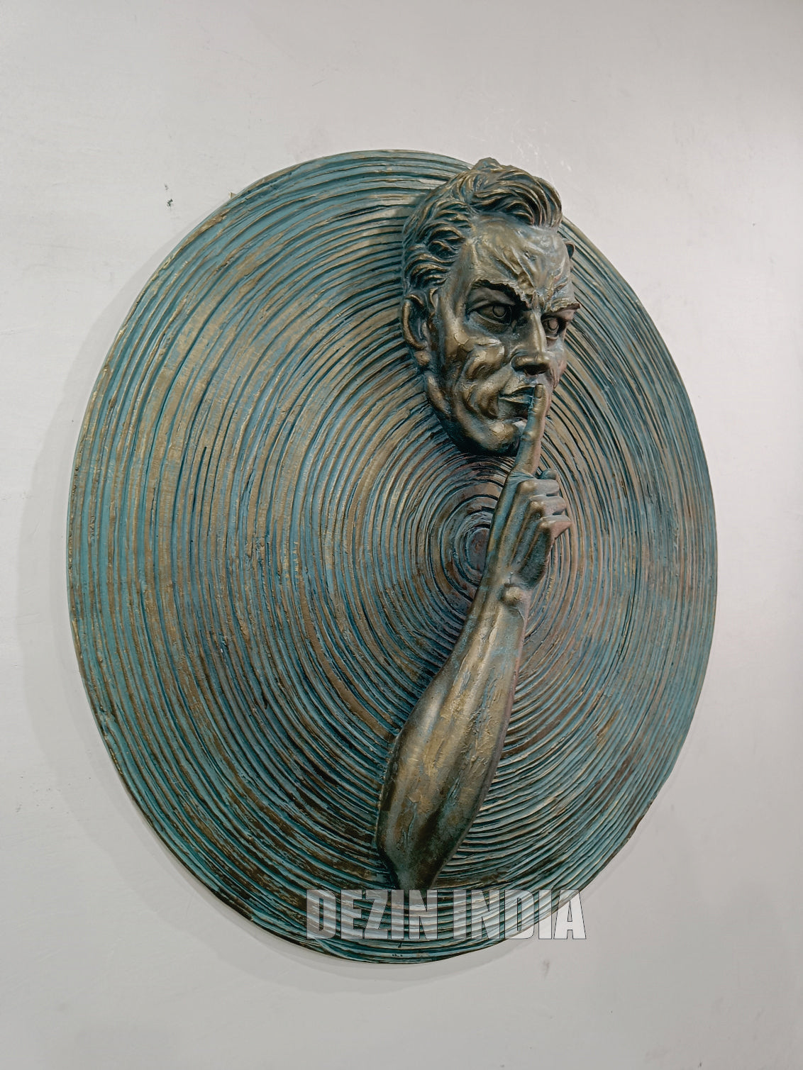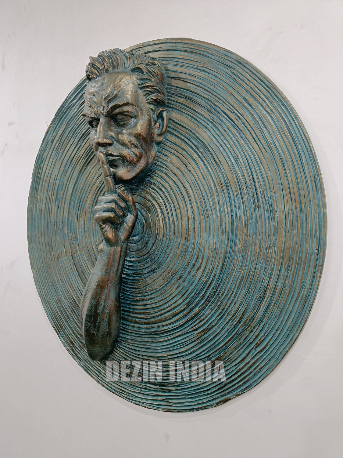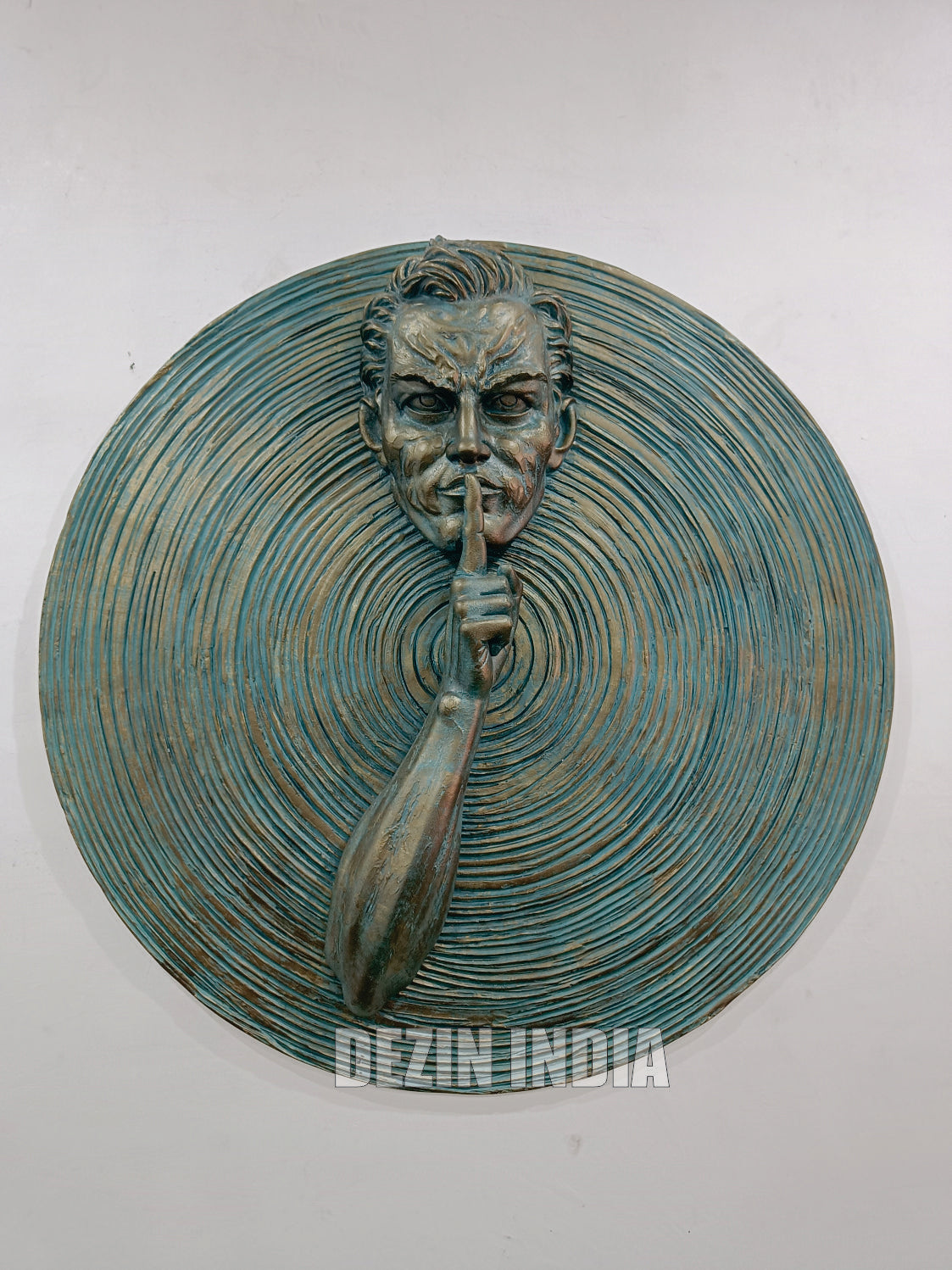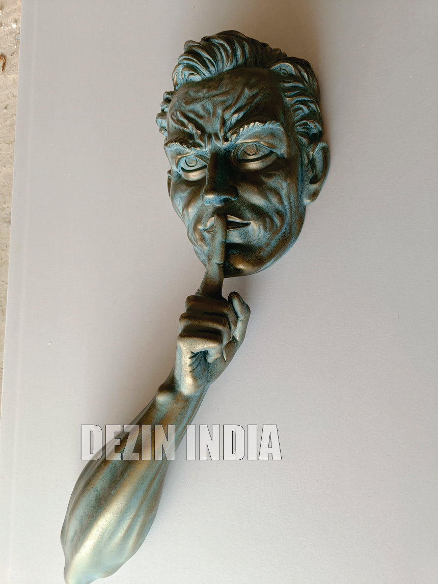 DA-81 Silence is Golden, Man with Silent Sign Wall Sculpture - 4ft