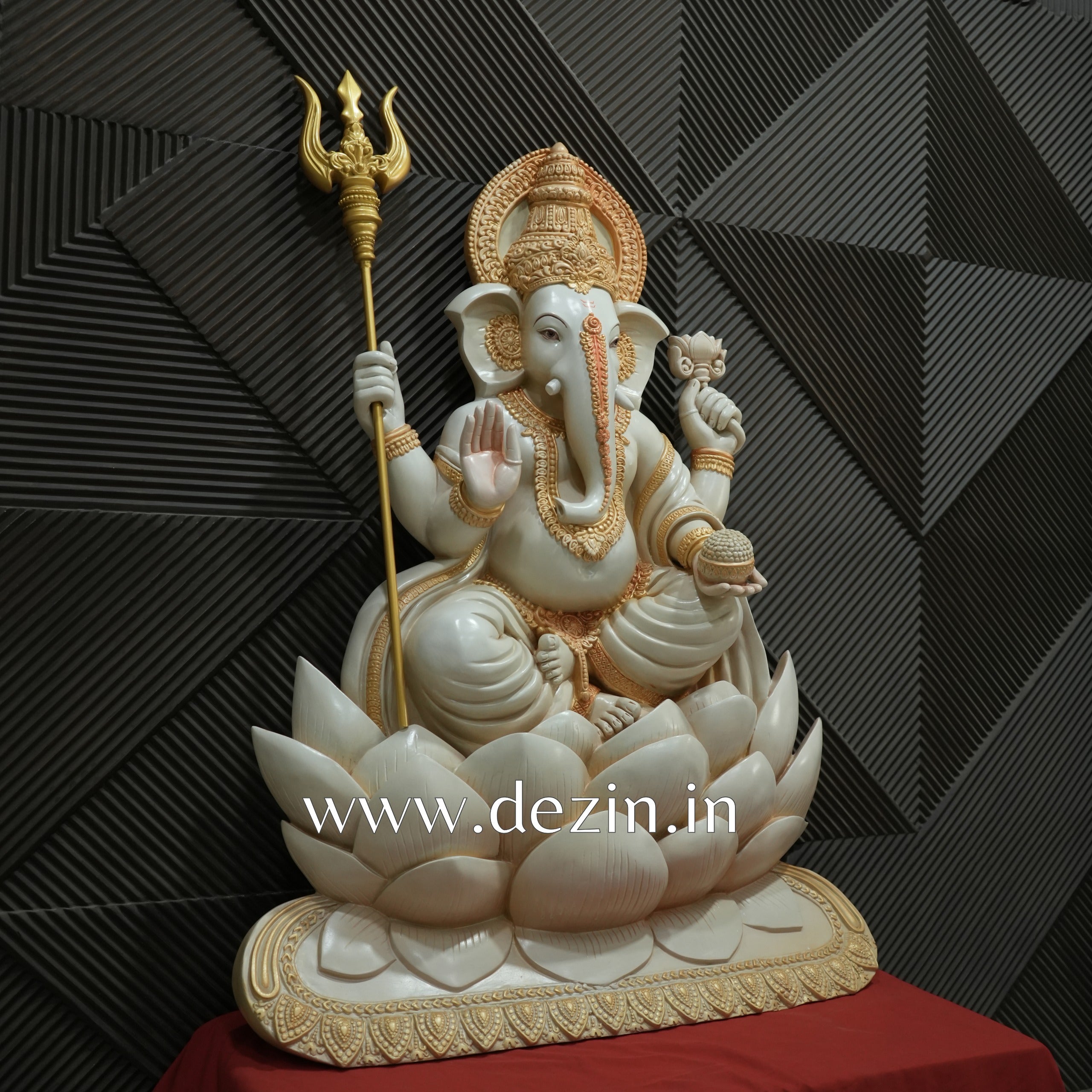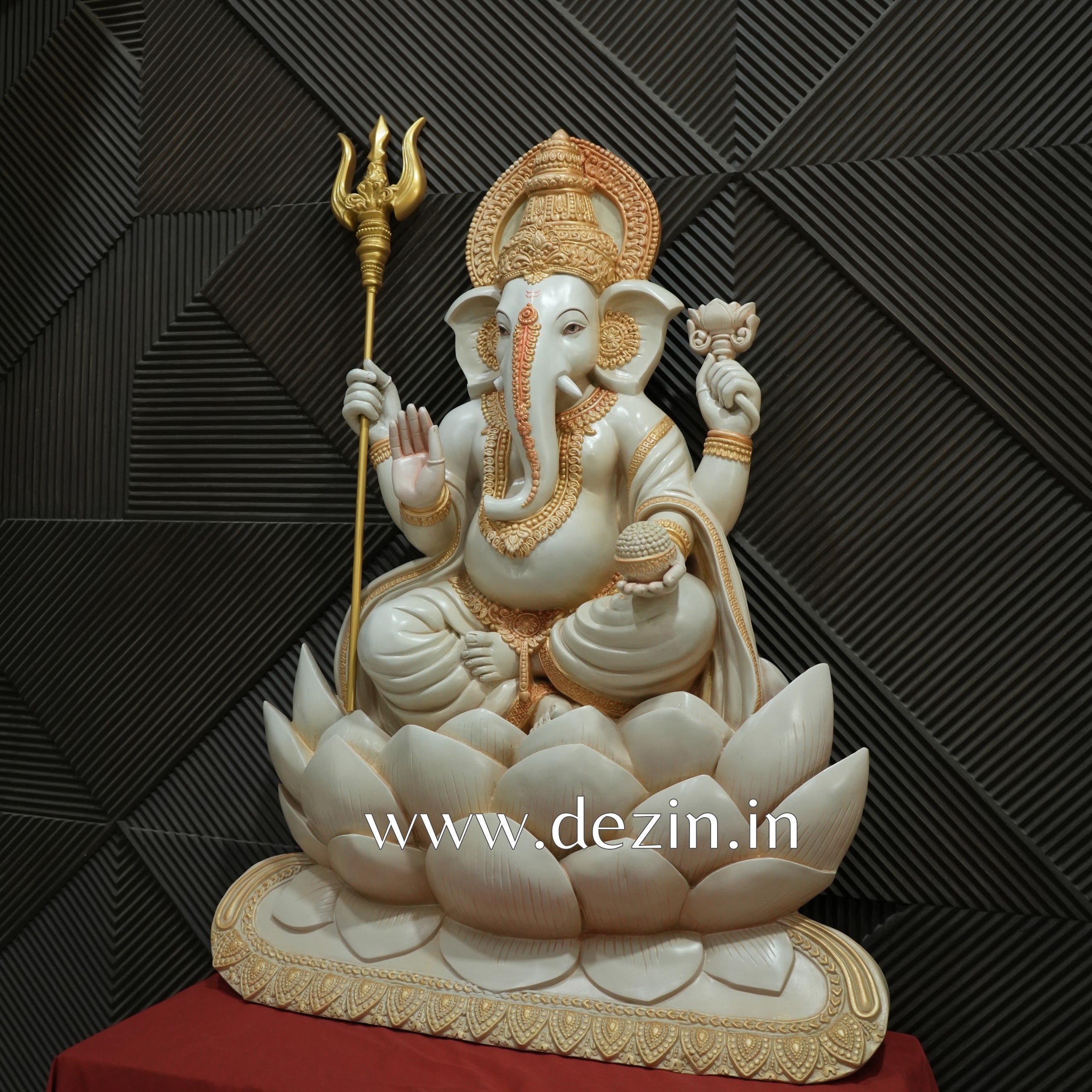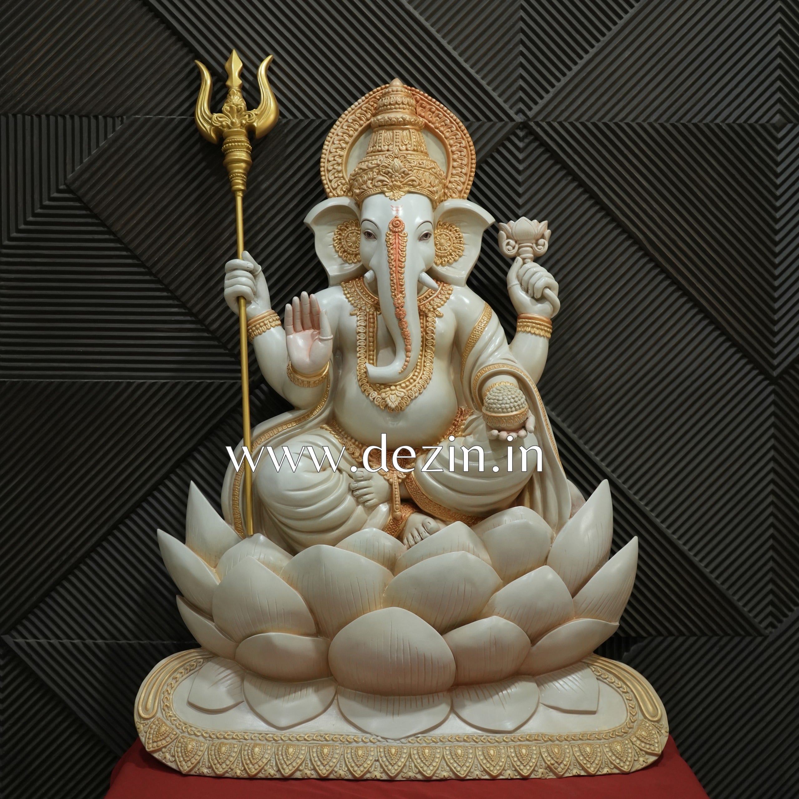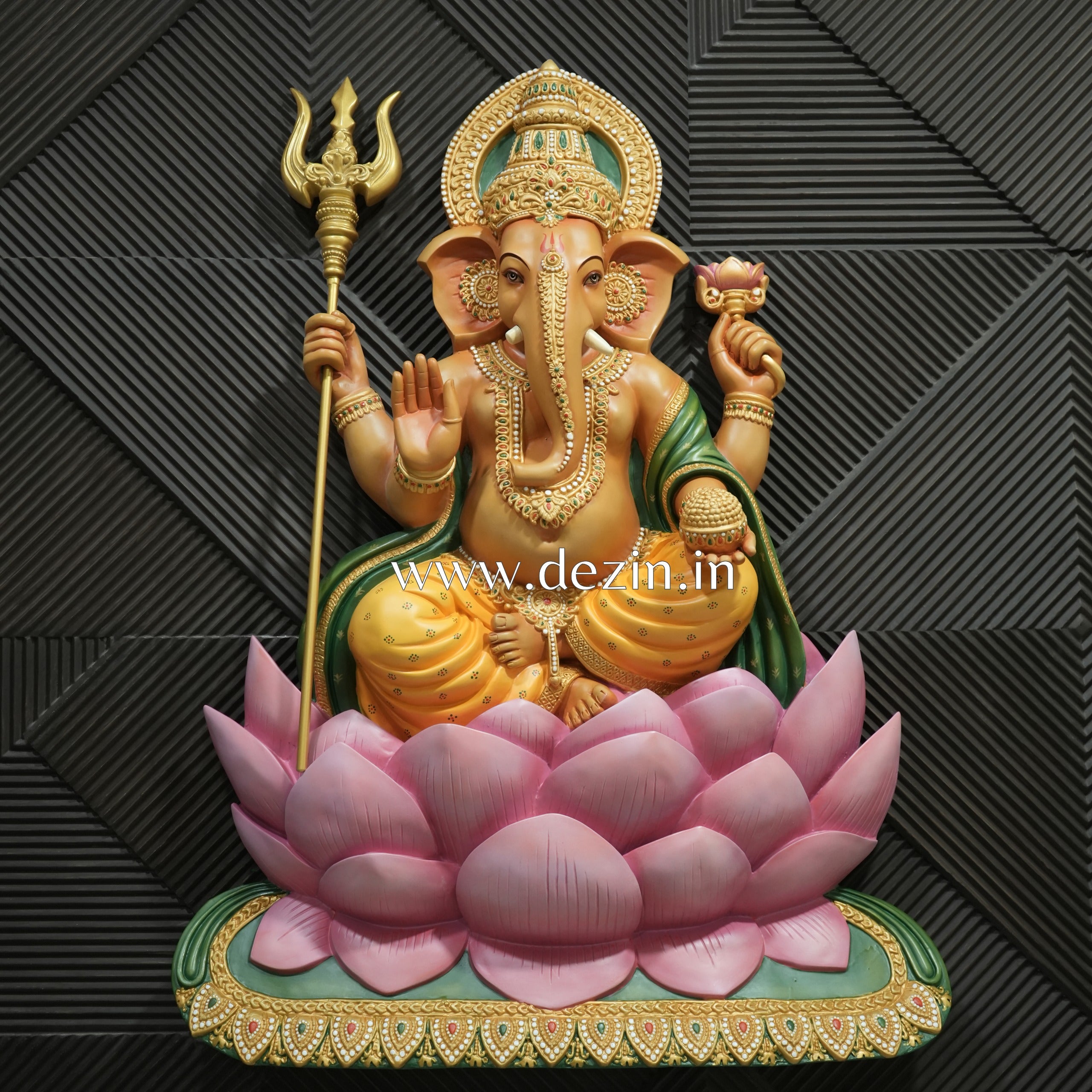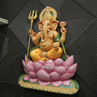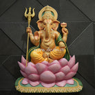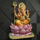 Shri Ganesha on Lotus Throne Wall Mural | 4x3ft Handcrafted Wall Art 🐘
