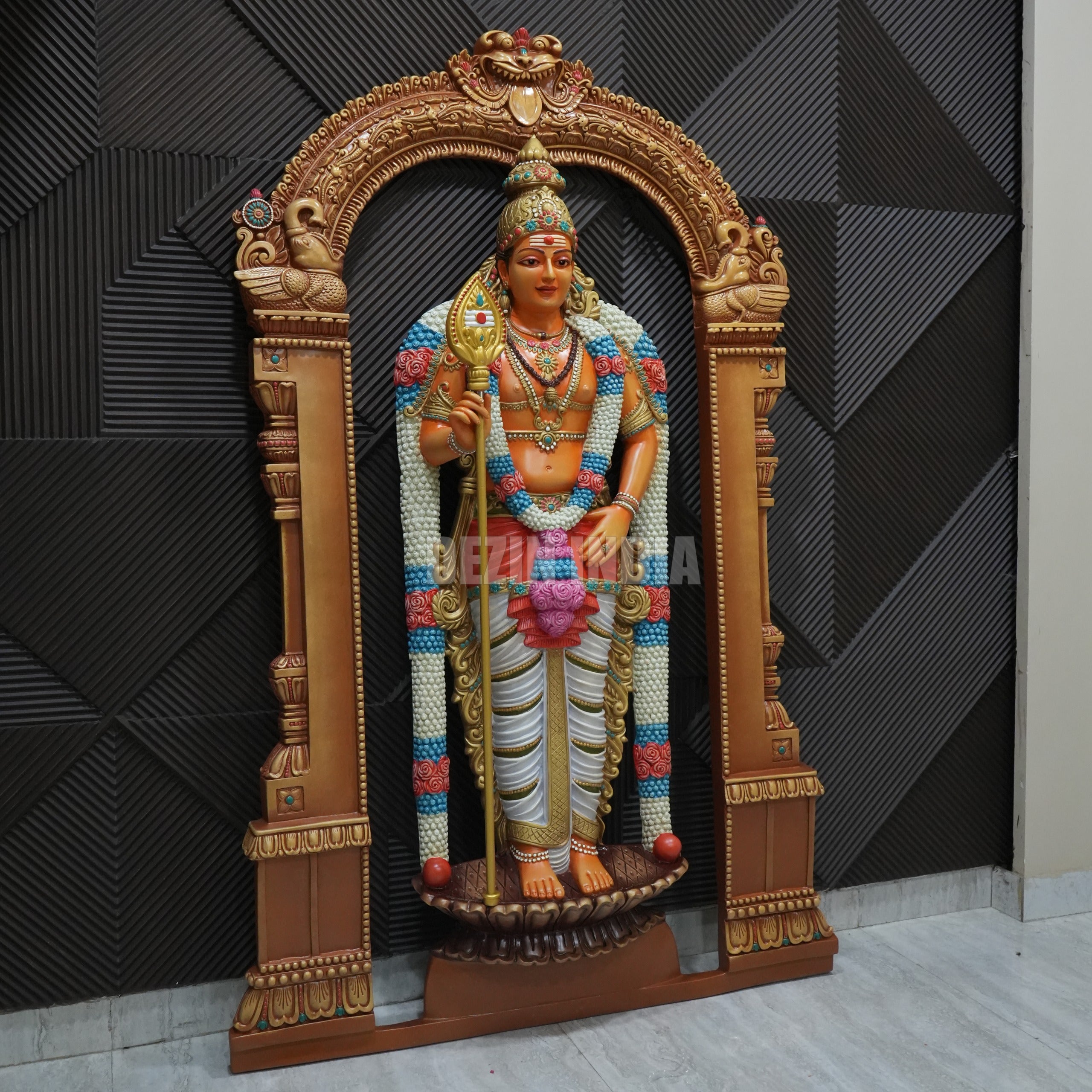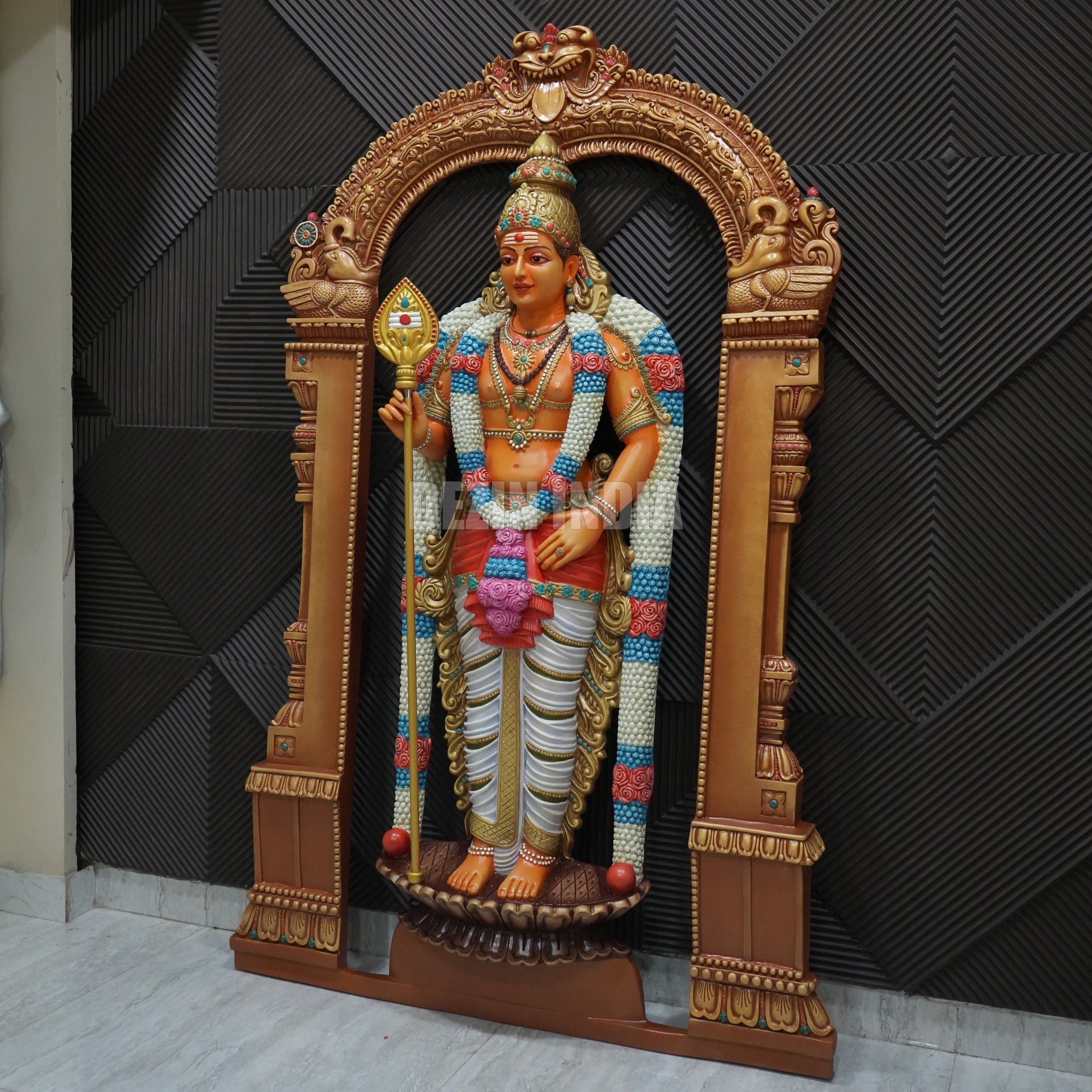 Lord Murugan Wall Mural with Prabhavali Arch – 6x4ft | South Indian Divine Decor | Dezin India