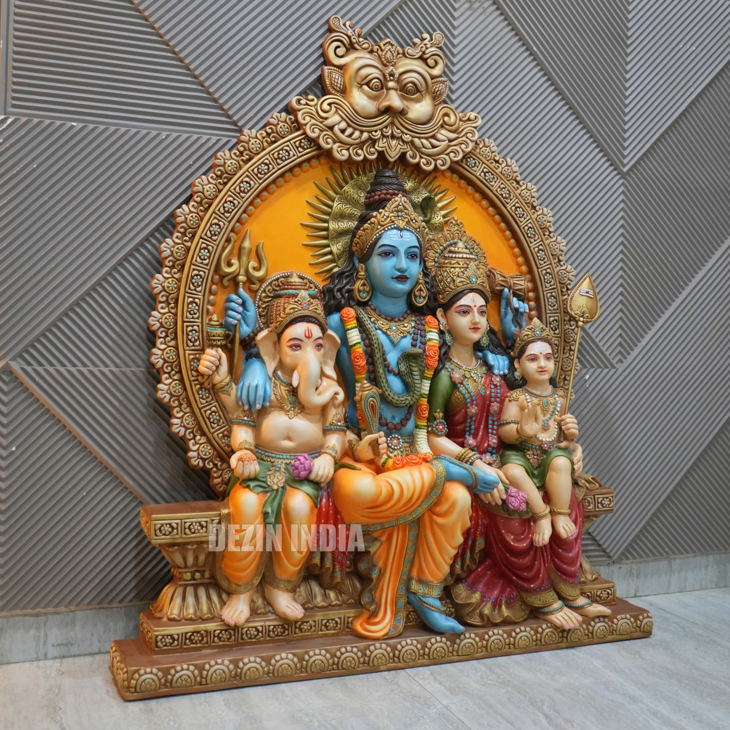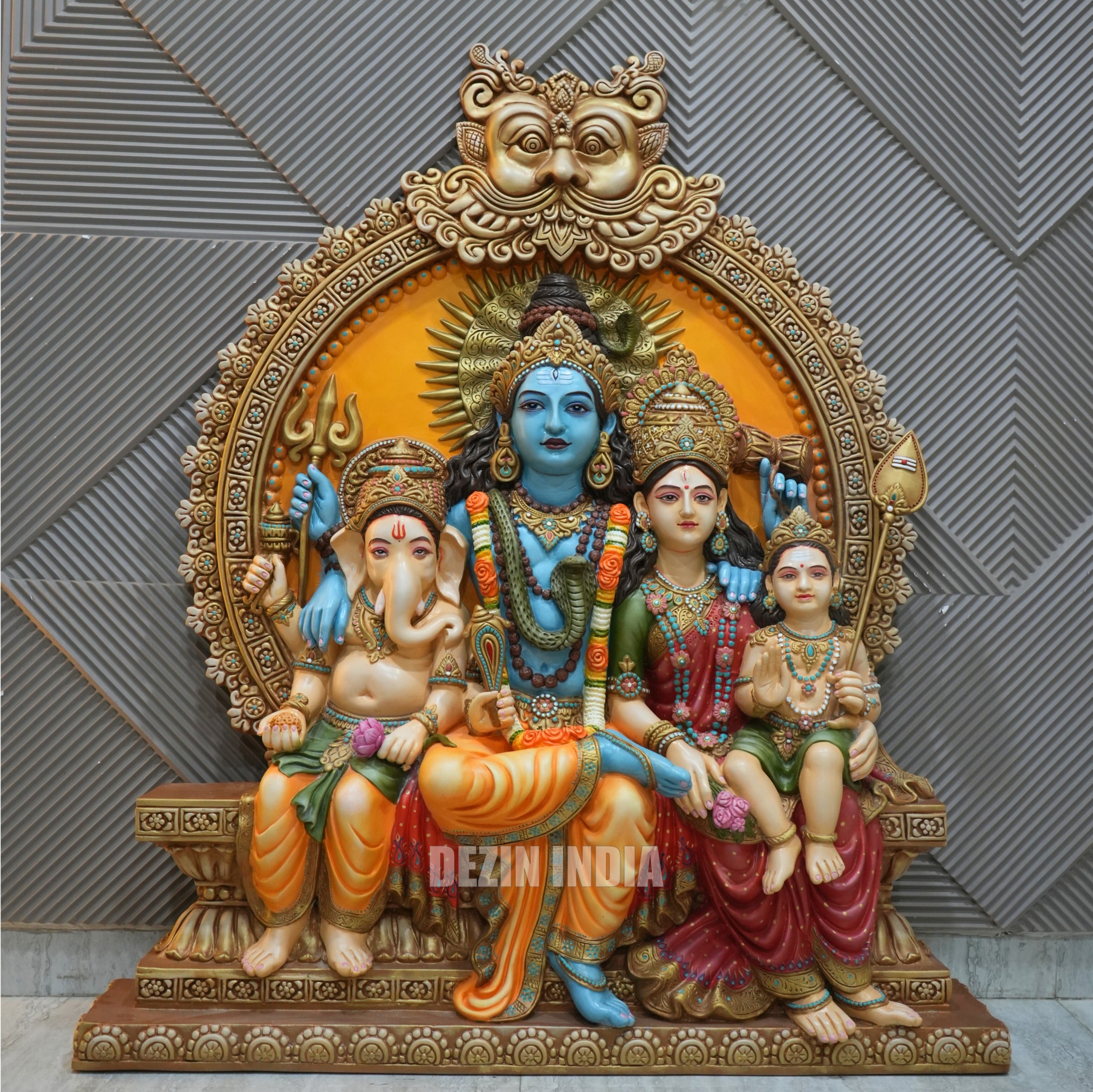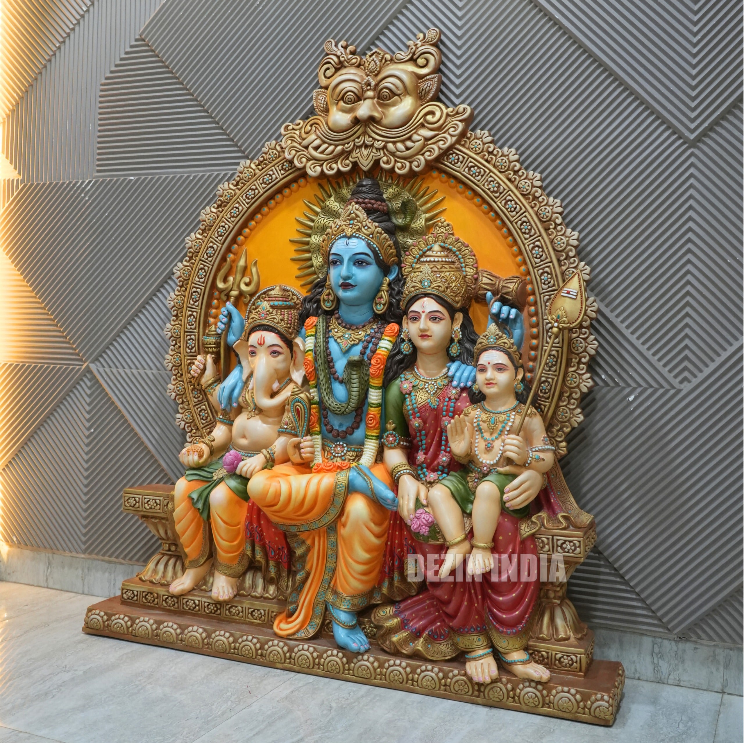 Shiva Parivar Wall Mural 4.5x4ft | Lord Shiva Family Sculpture for Home & Temple