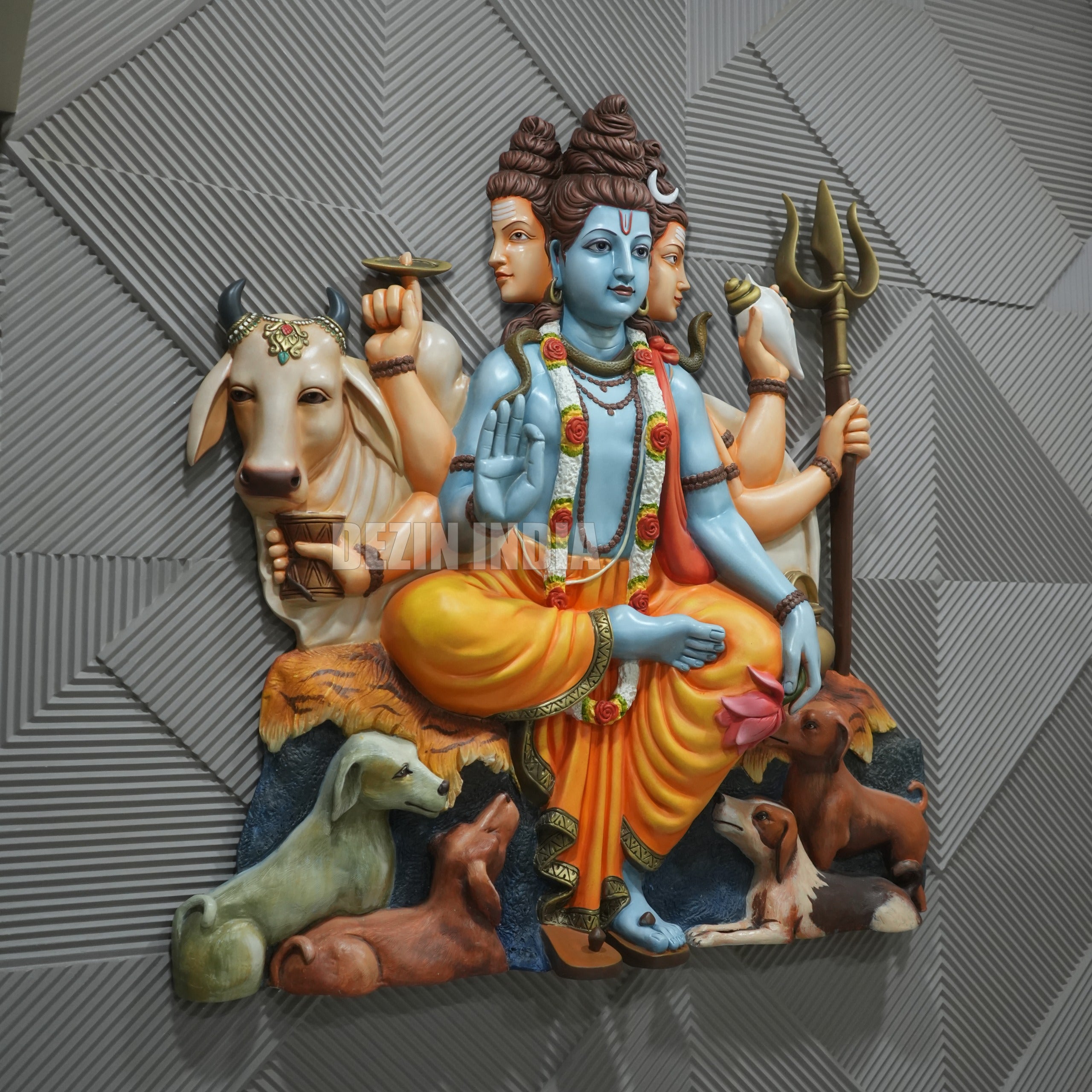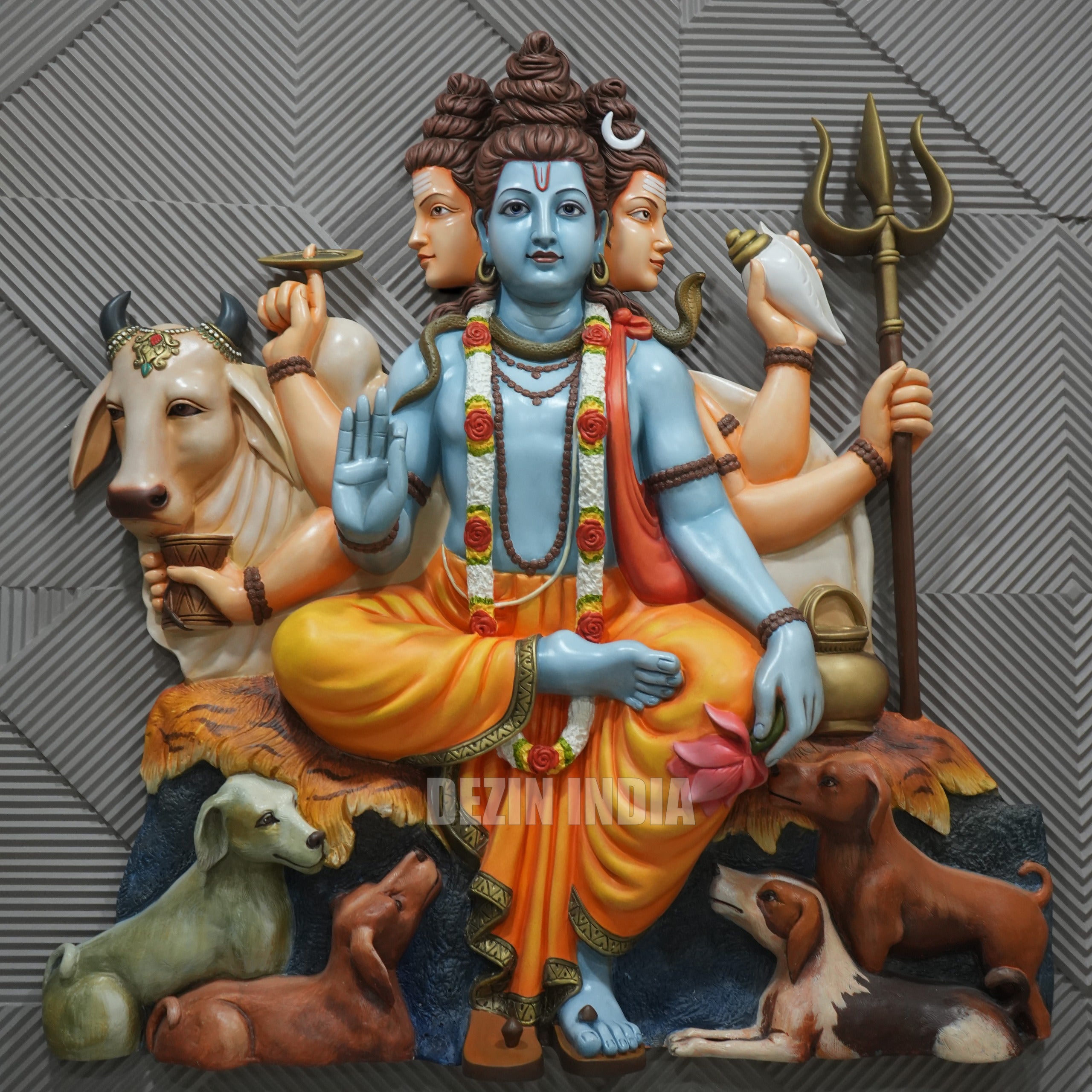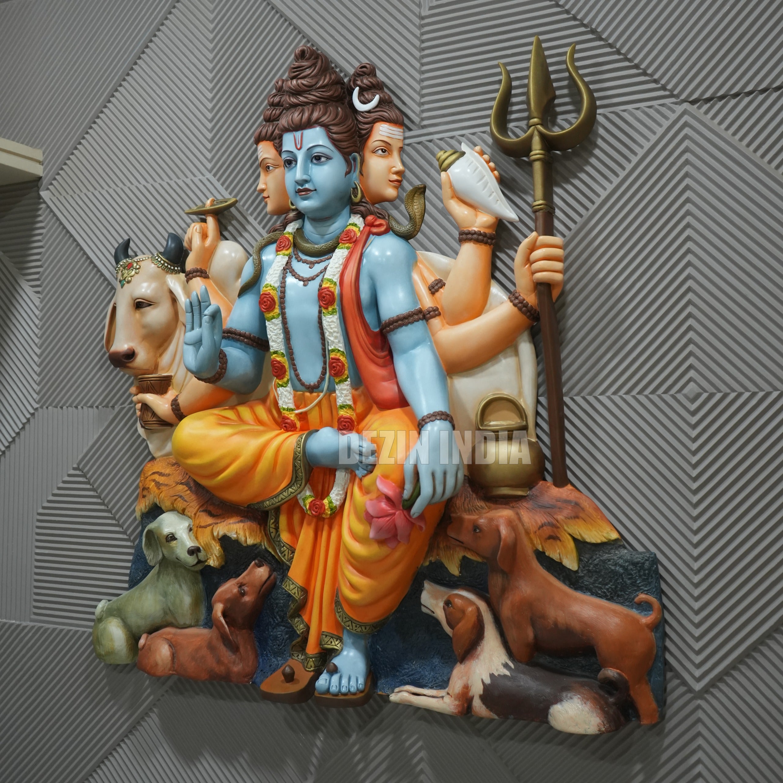 Lord Dattatreya Wall Mural – 4x4ft | Divine Sculpture for Home & Temple | Dezin India