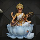 Handcrafted Maa Saraswati Wall Mural - 5x4 ft | Spiritual Decor & Wall Art