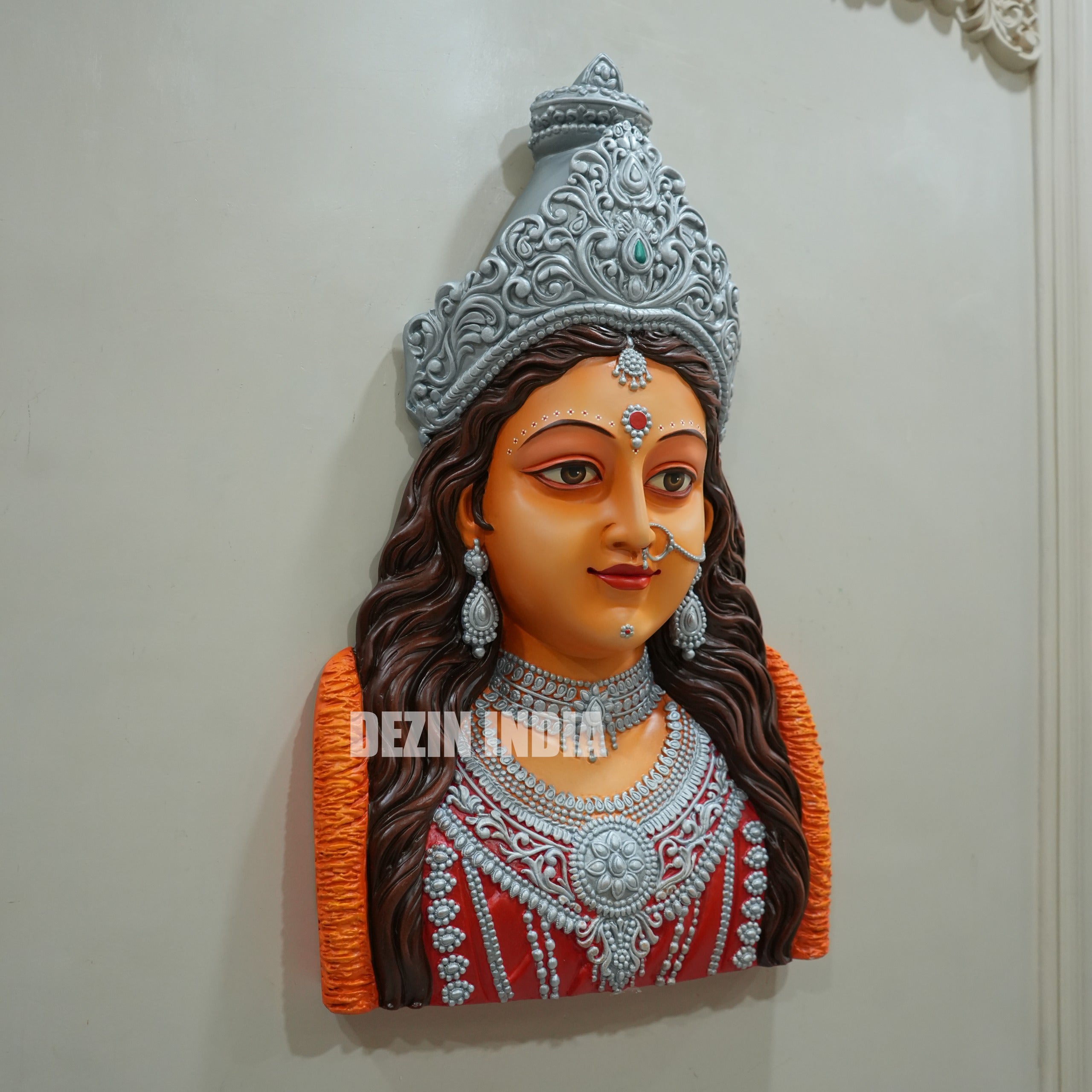 Mata Durga Wall Mural | Divine Handcrafted 2.5x1.5ft Wall Art for Temple & Home
