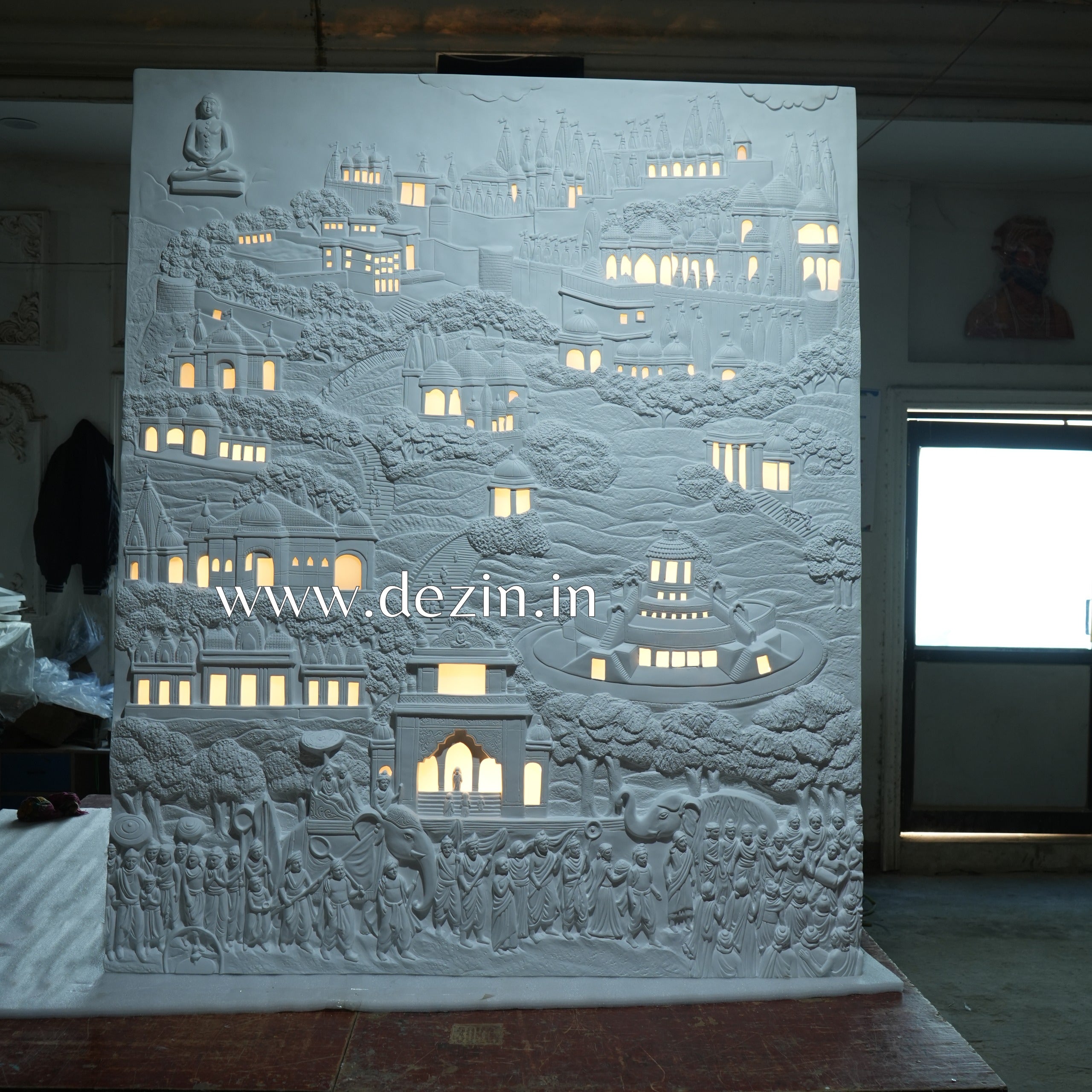 Palitana Temple Wall Hanging Mural - 7x5.5ft | Shatrunjaya Mahatirth 3D Relief Art