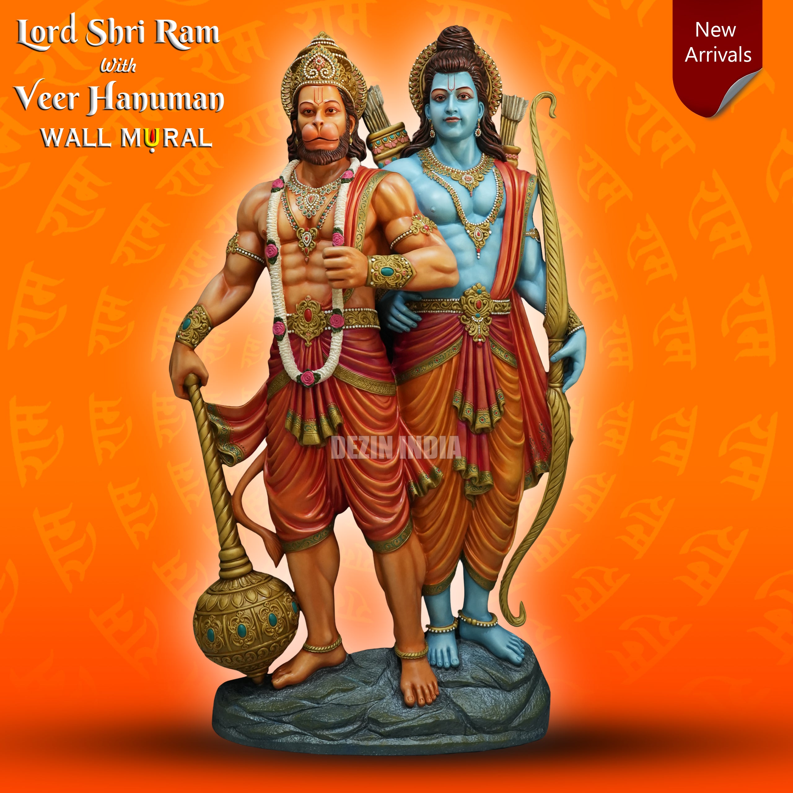 Lord Shri Ram With Veer Hanuman 3D Wall Mural | Divine Raghunandan Artwork 7x5 ft