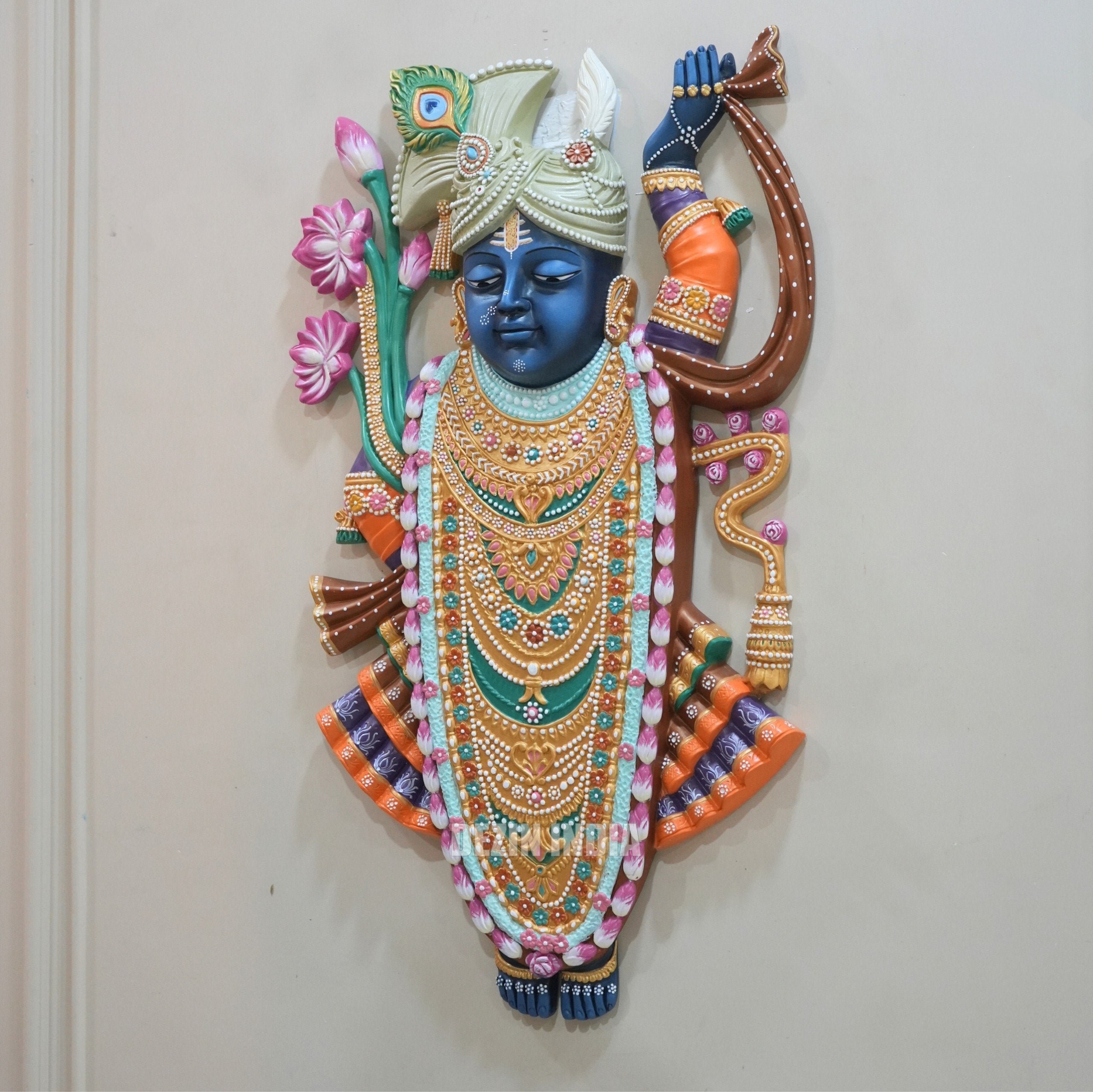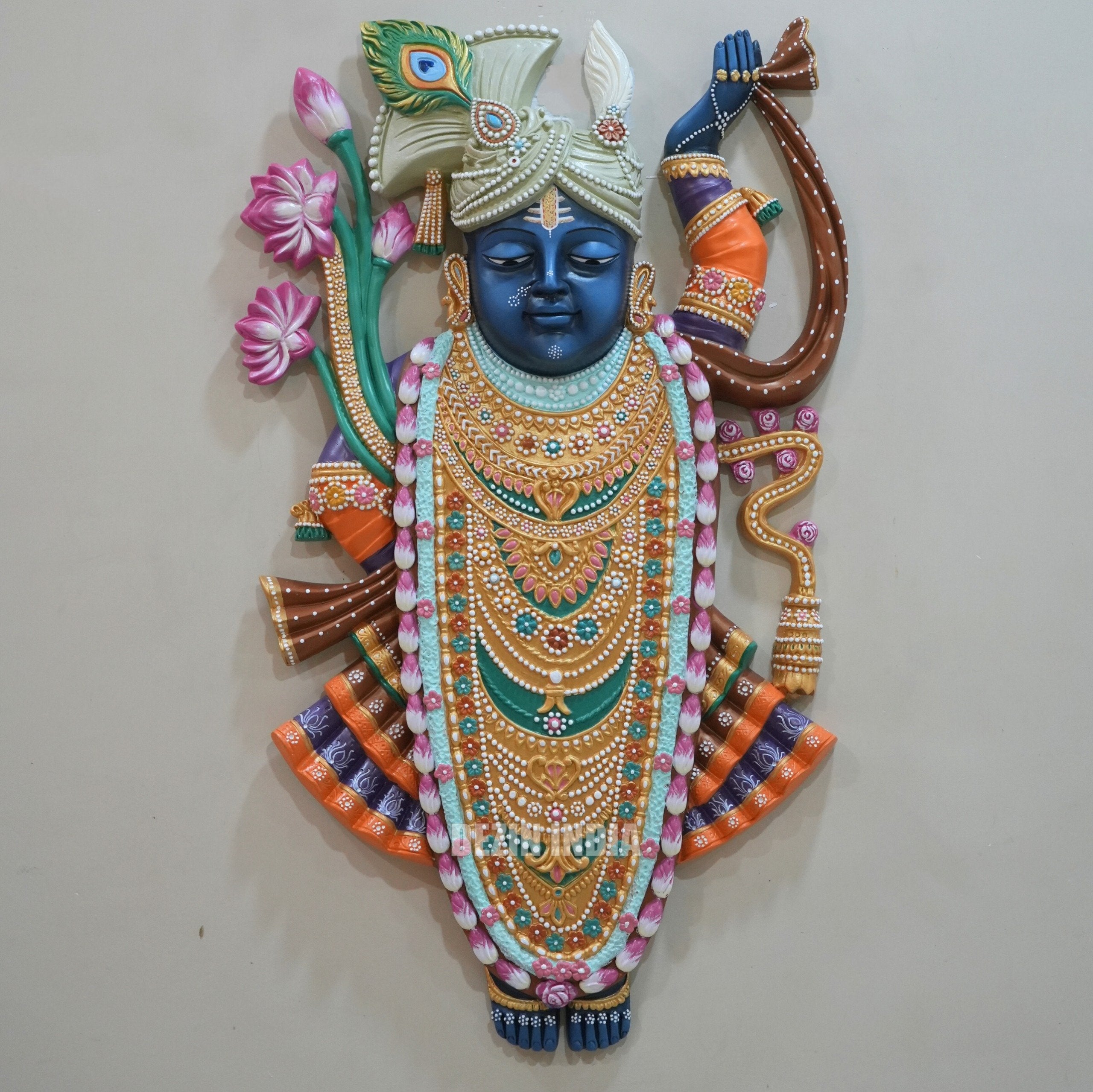 Shrinathji Wall Mural 36x22 Inches | Govardhan Nathdwara Krishna Sculpture for Home & Temple
