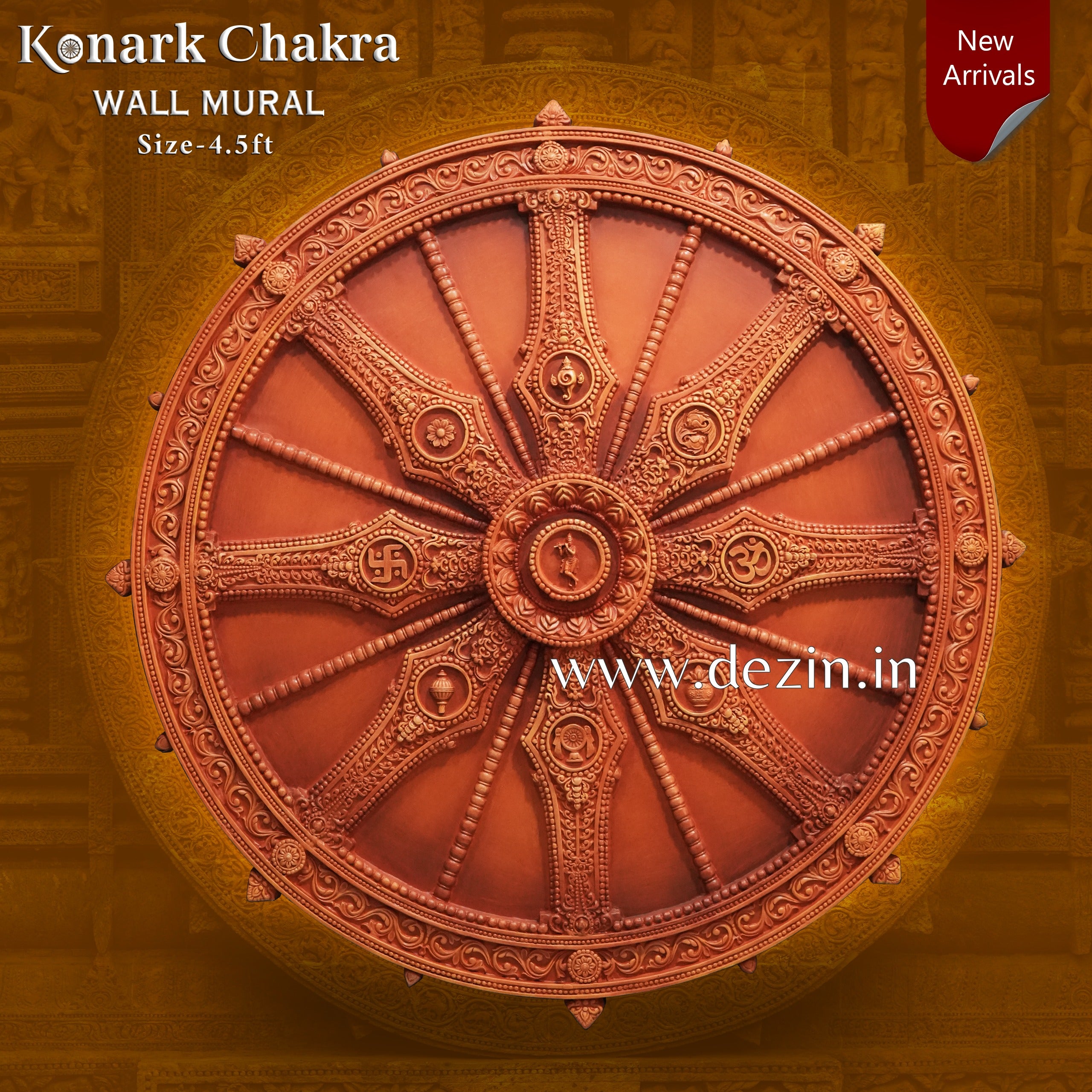 4.5ft Konark Surya Temple Chariot Wheel Mural | Spiritual & Meaningful Arts