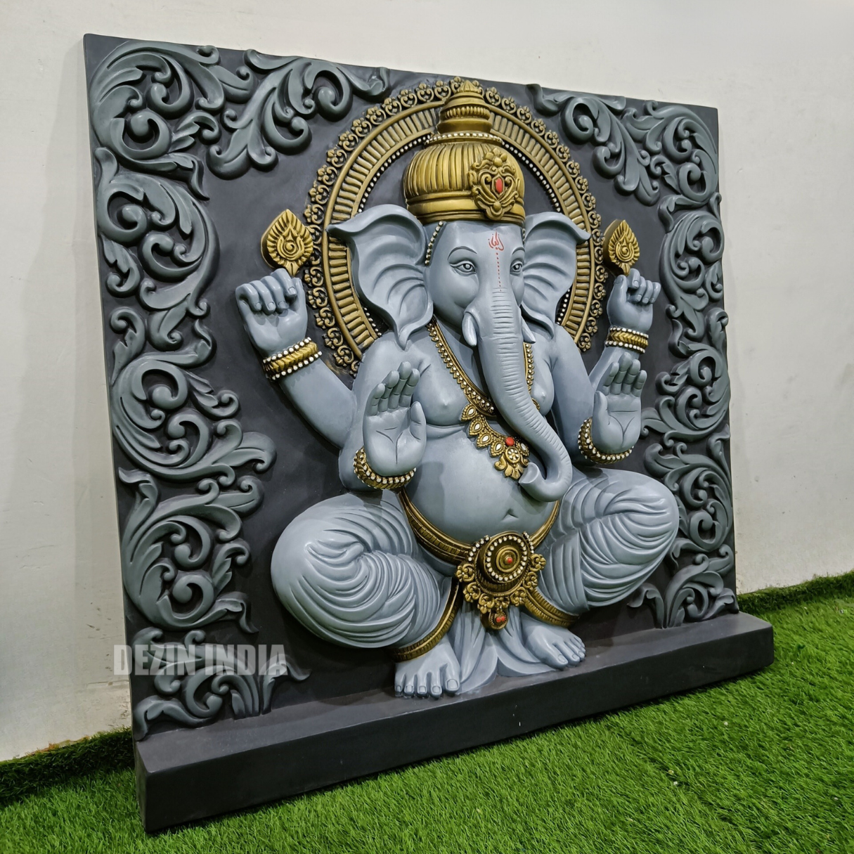 DA-102 Lord Ganesha Wall Hanging Sculpture - 4x4ft