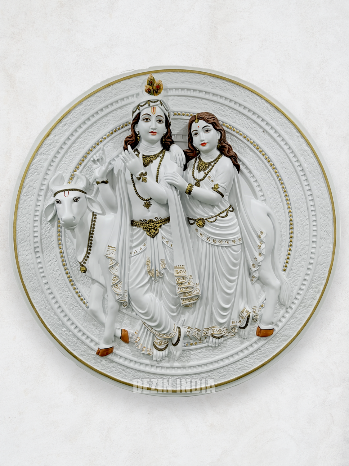 DA-65 Radha Krishna with Cow Wall Hanging Sculpture - 4ft Round