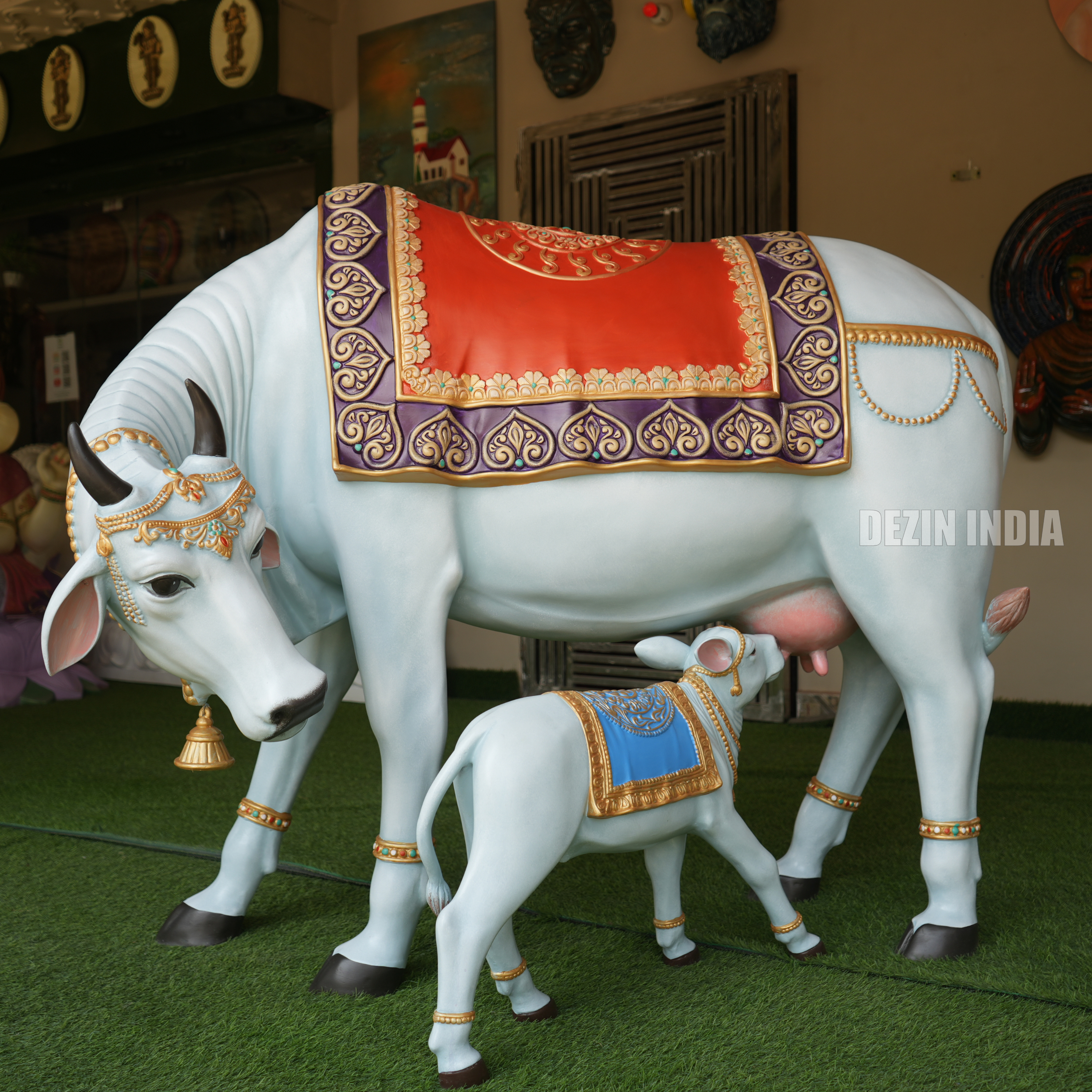 Decorative Kamdhenu Cow and Calf Sculpture Set | Life-Size 4x5ft by Dezin India