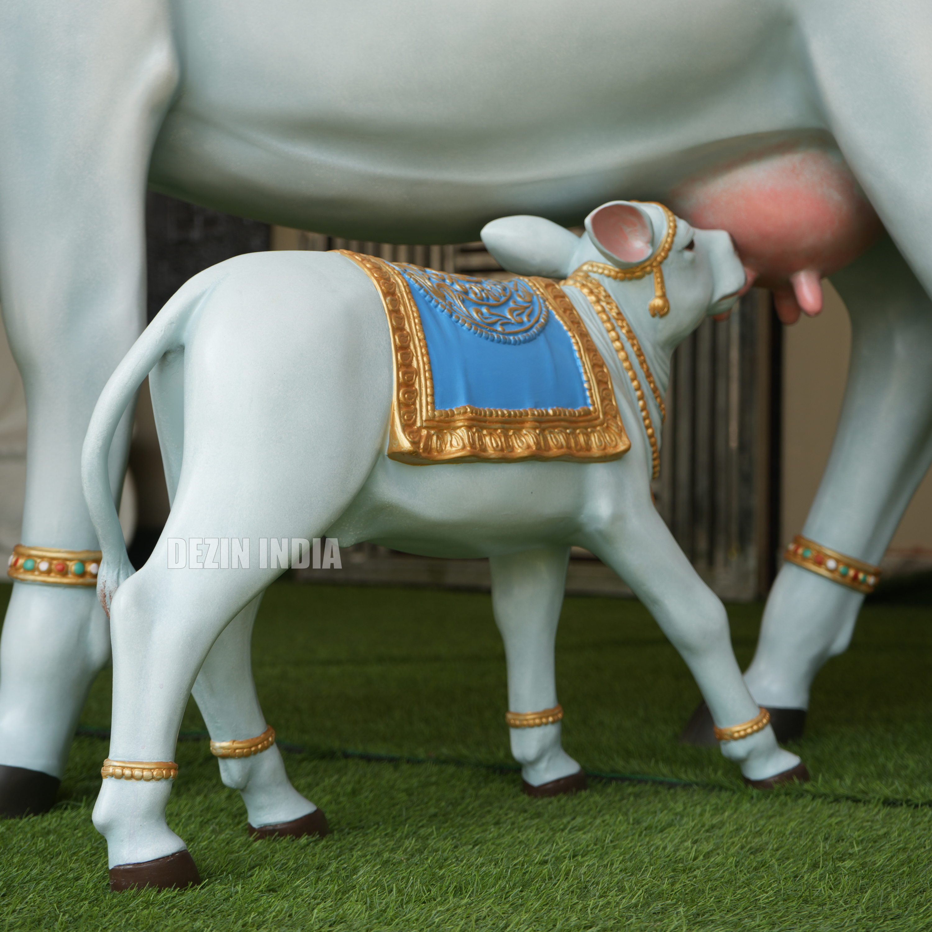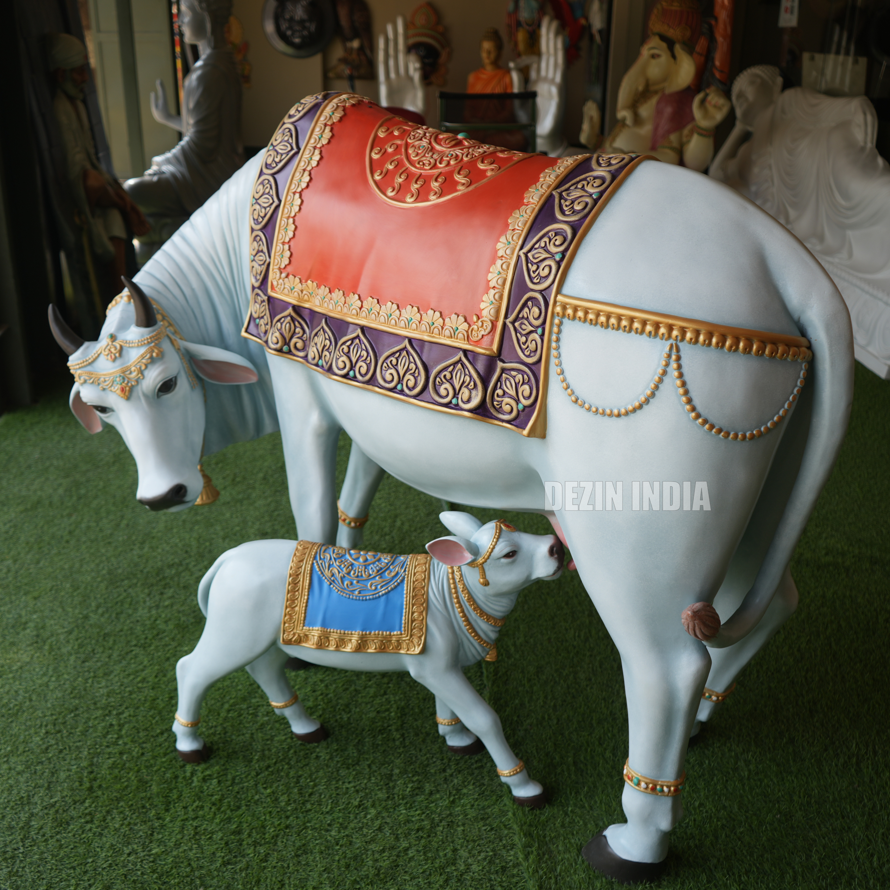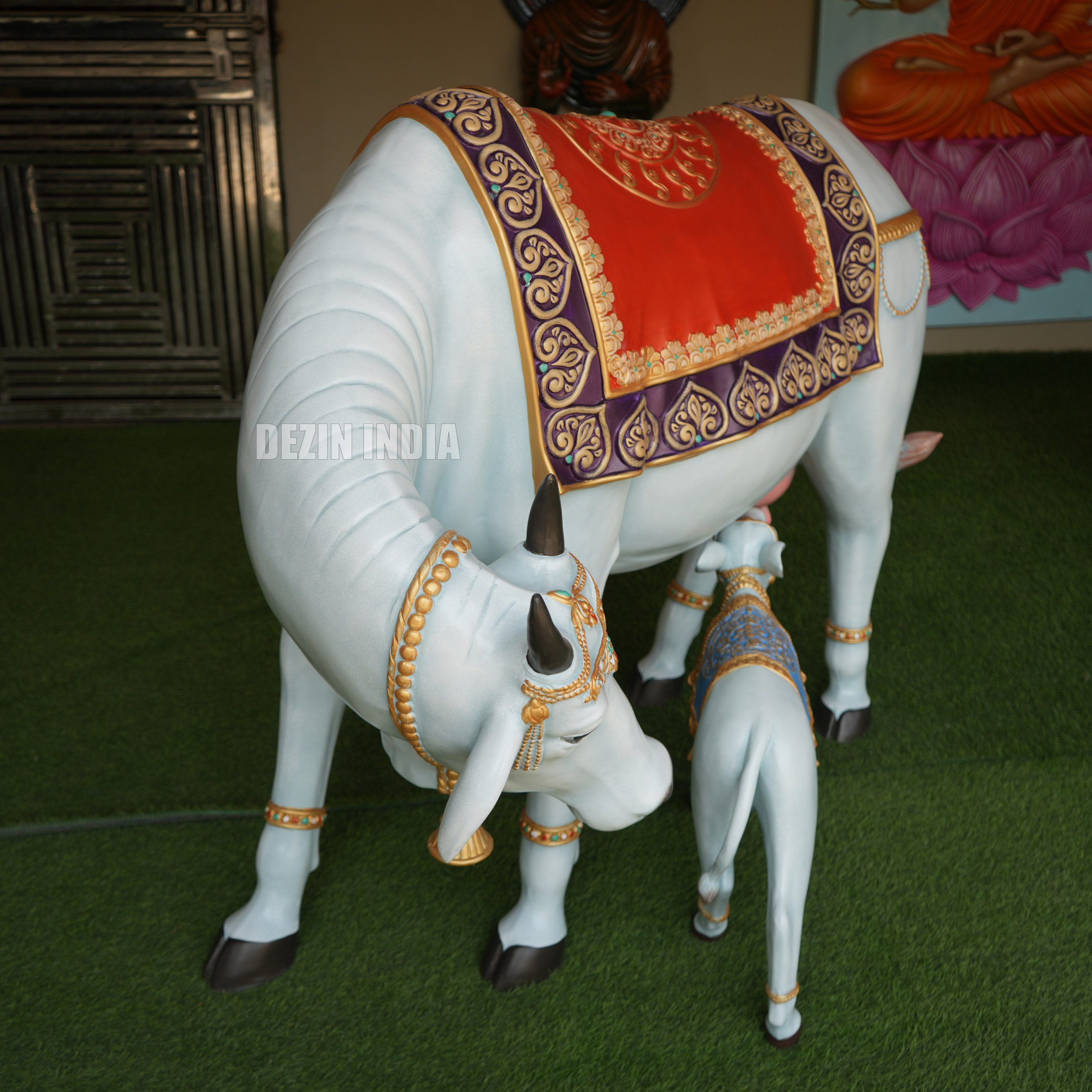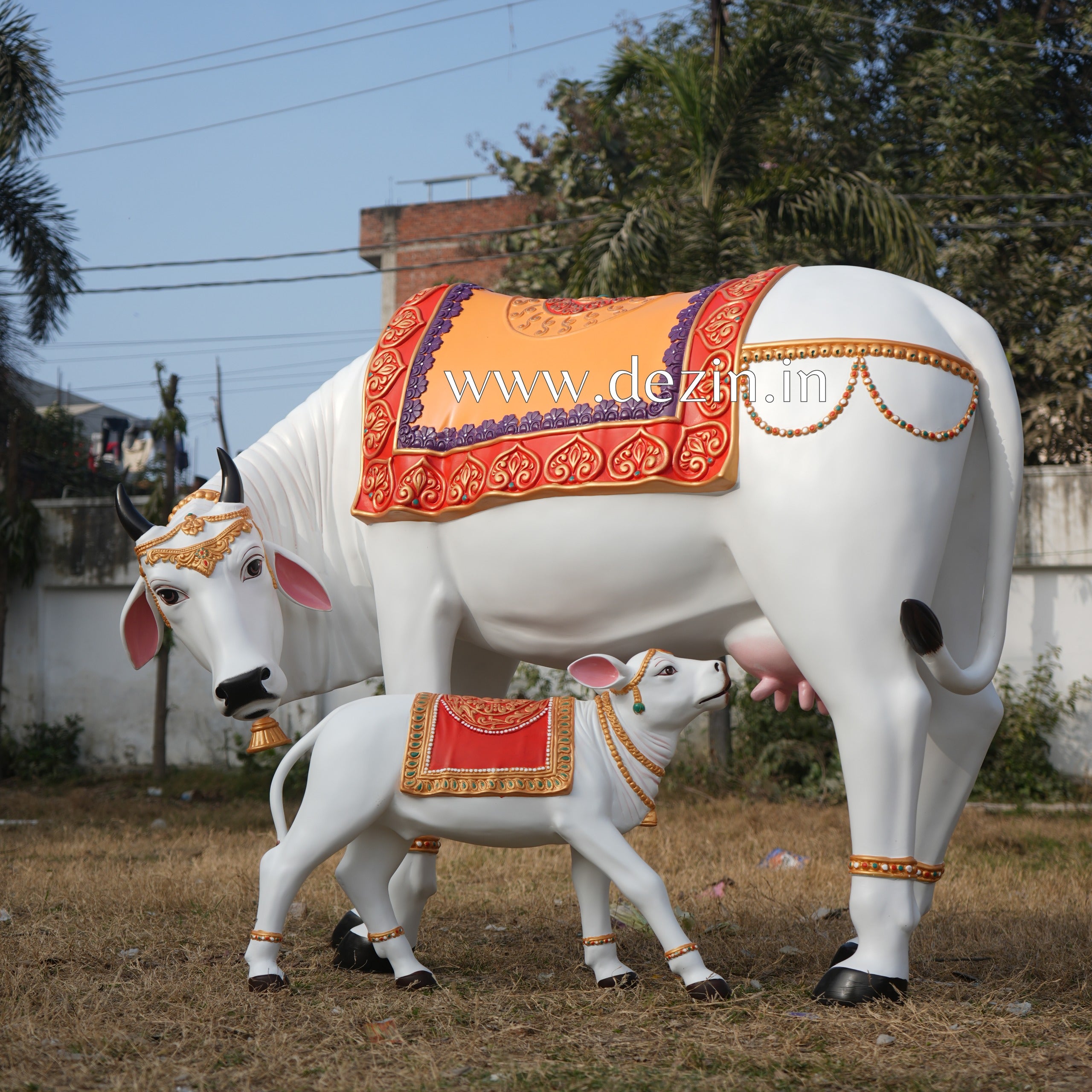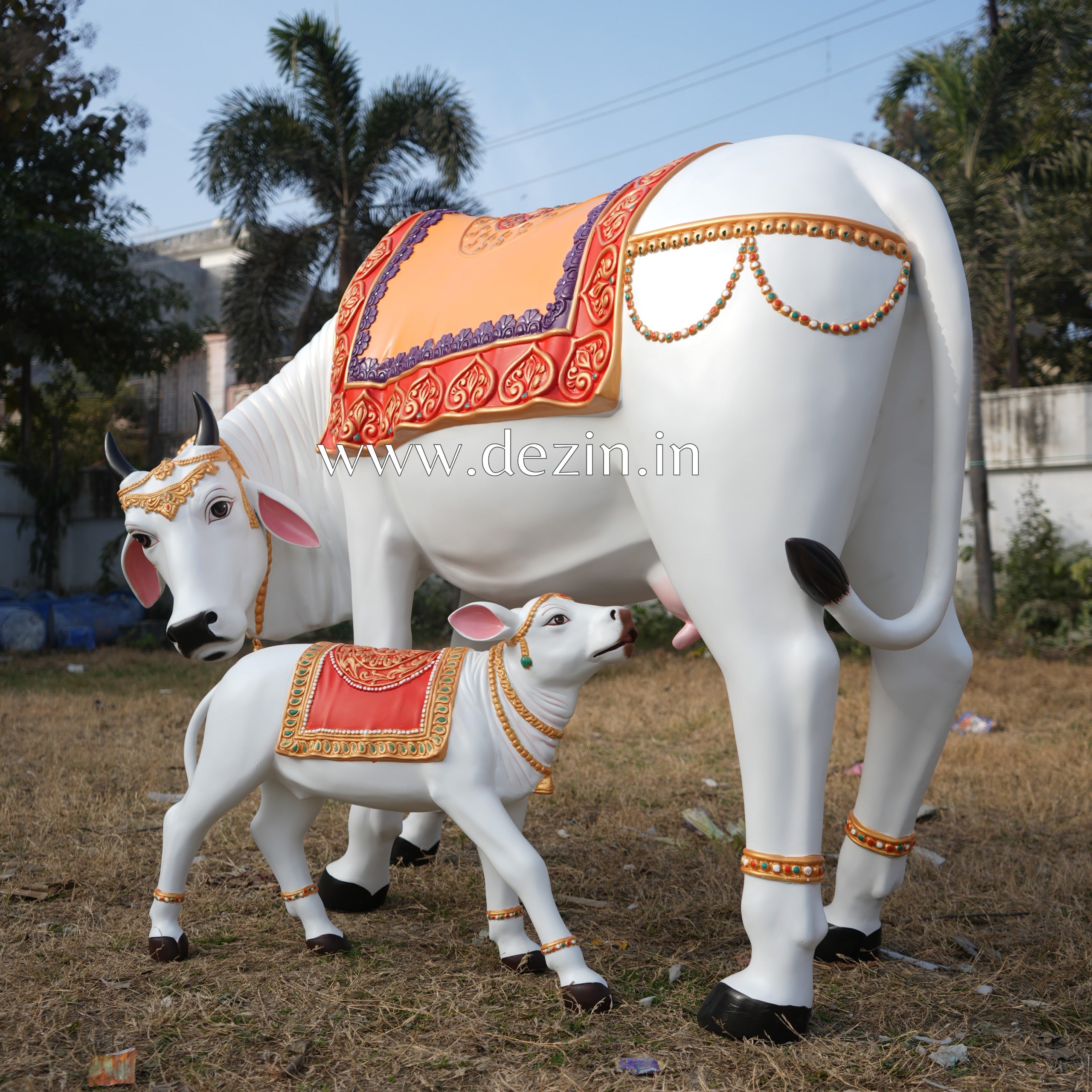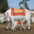 Decorative Kamdhenu Cow and Calf Sculpture Set | Life-Size 4x5ft by Dezin India
