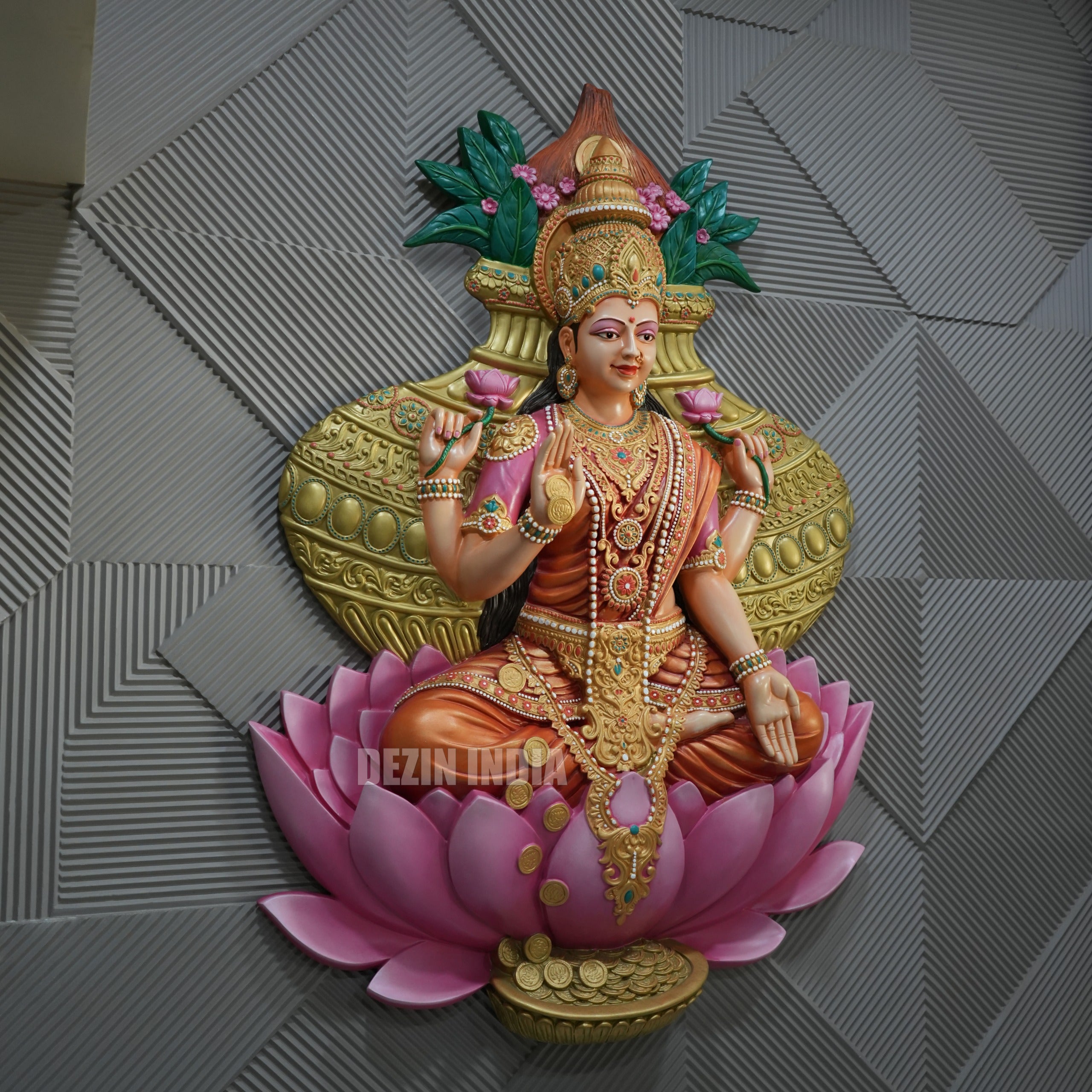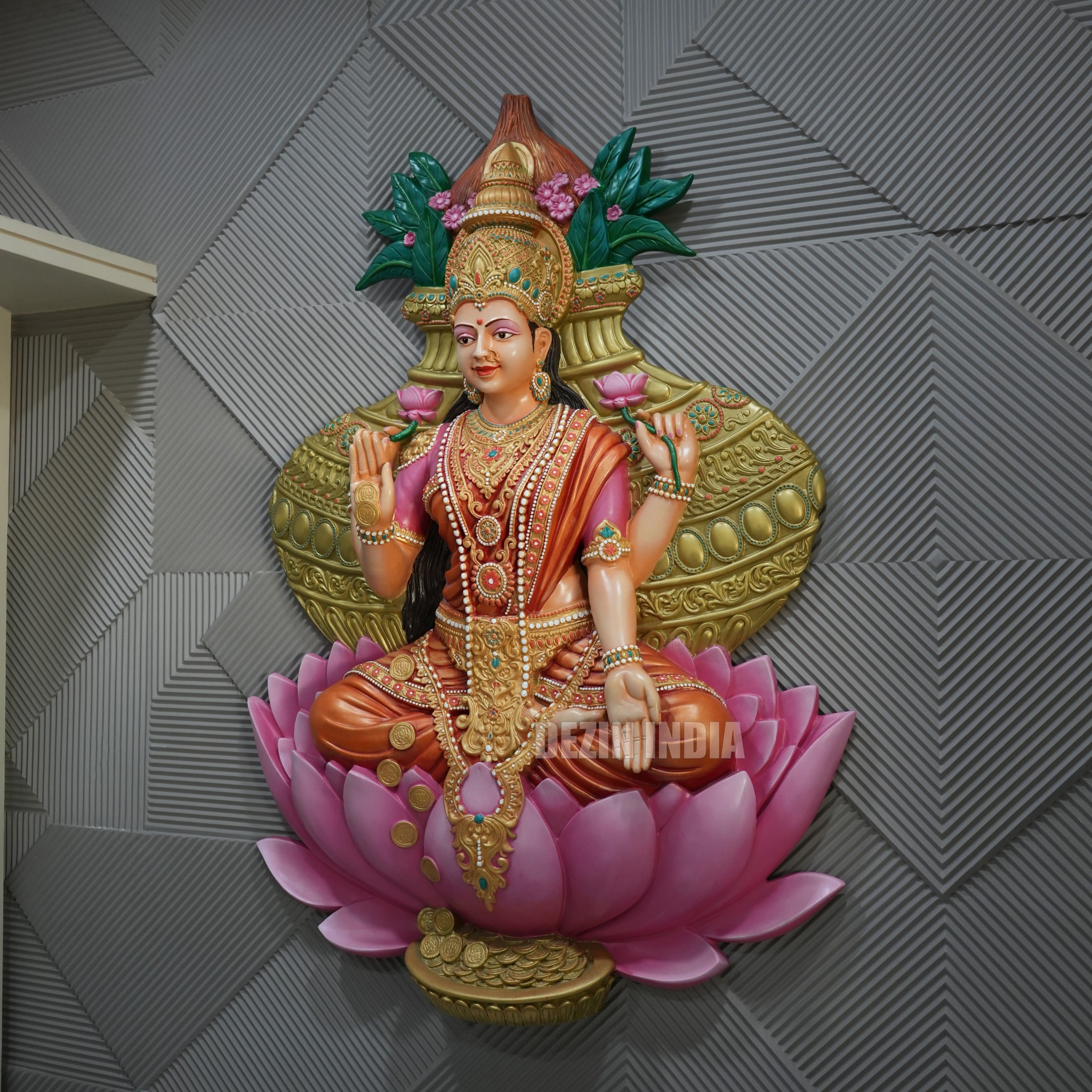 Goddess Lakshmi Wall Mural 5x4ft | Mahalakshmi Sculpture for Home & Temple